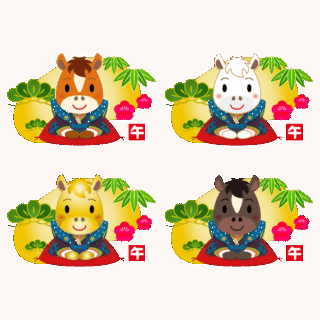 商用フリー・無料イラスト干支午年のイラスト(馬・うまどし)アウトラインあり_umadoshi086